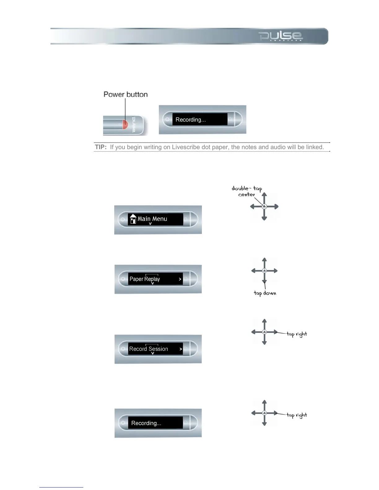 2. Quick Record: If your Pulse smartpen is on, press and hold the Power button