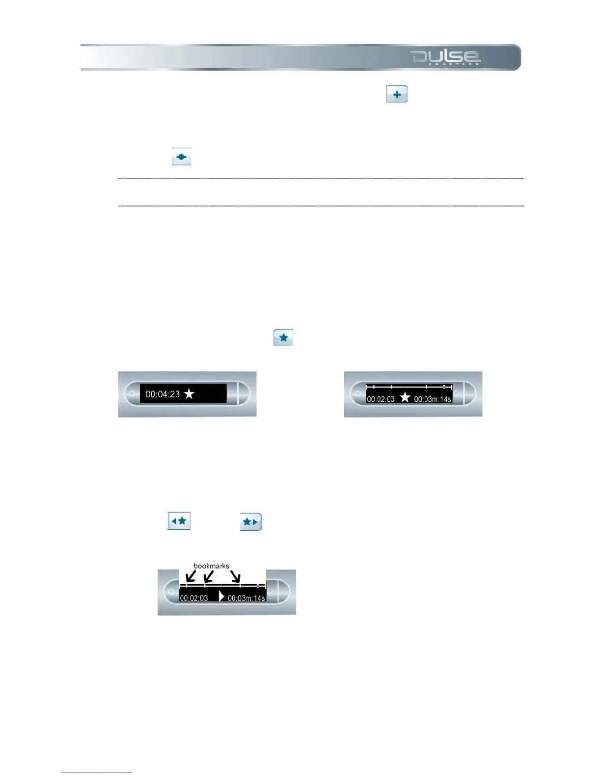 During playback, your Pulse smartpen display will indicate the bookmarks in the audio timeline.