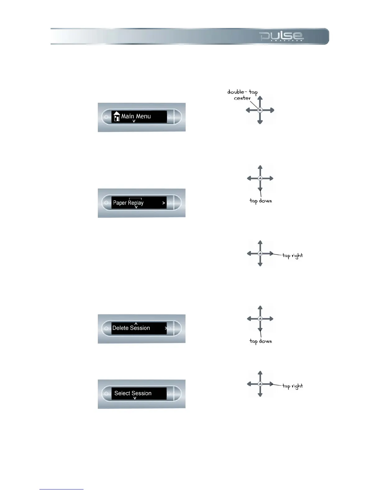 To delete Paper Replay sessions from your Pulse smartpen using the Main Menu: