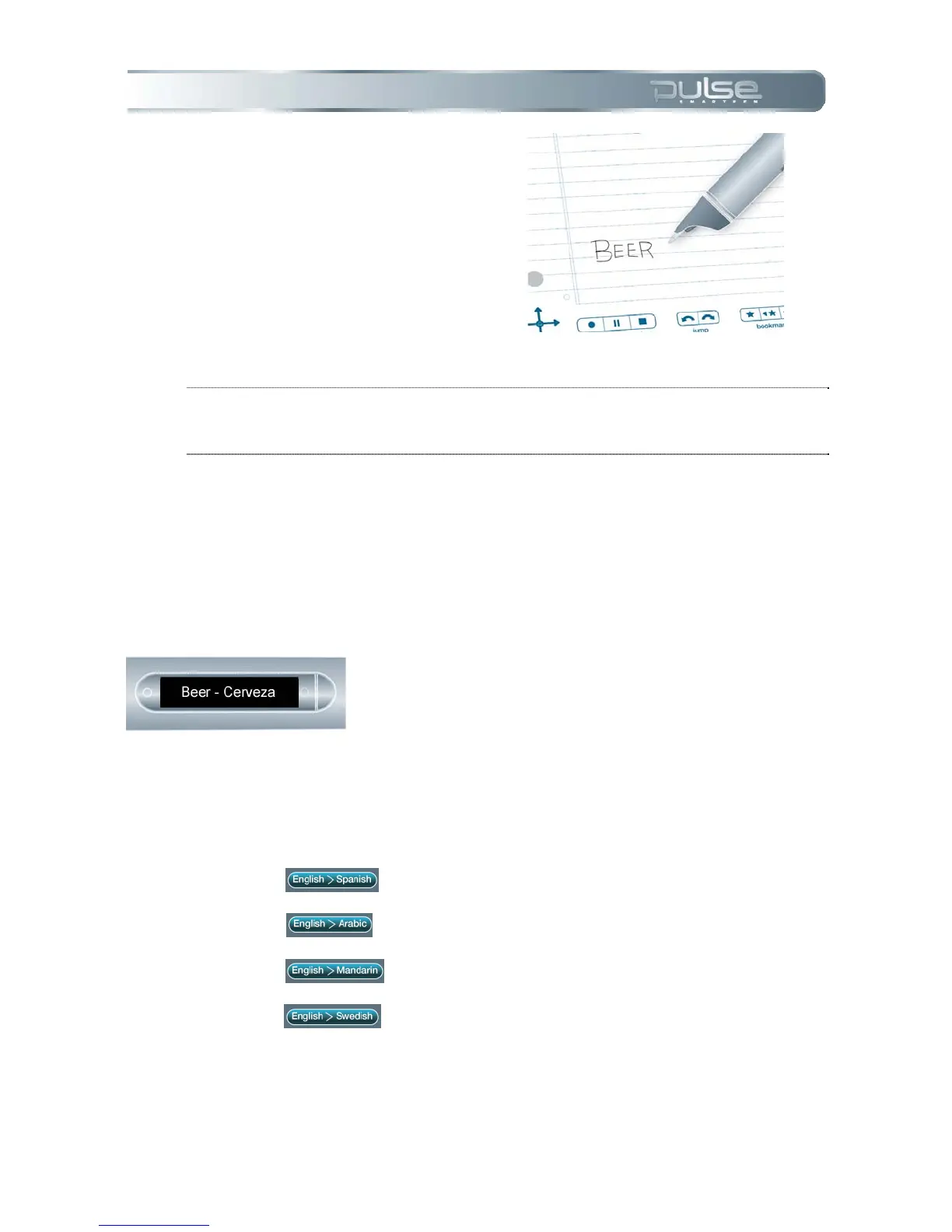 NOTE: When a language is displayed on your Pulse smartpen screen, the