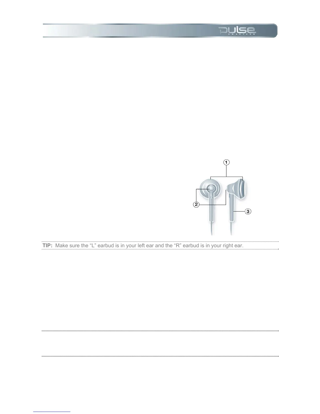 TIP: Make sure the “L” earbud is in your left ear and the “R” earbud is in your right ear.