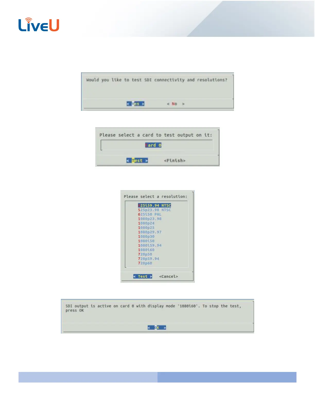 server will appear offline in LiveU Central. Please select “Yes” to proceed with the test.