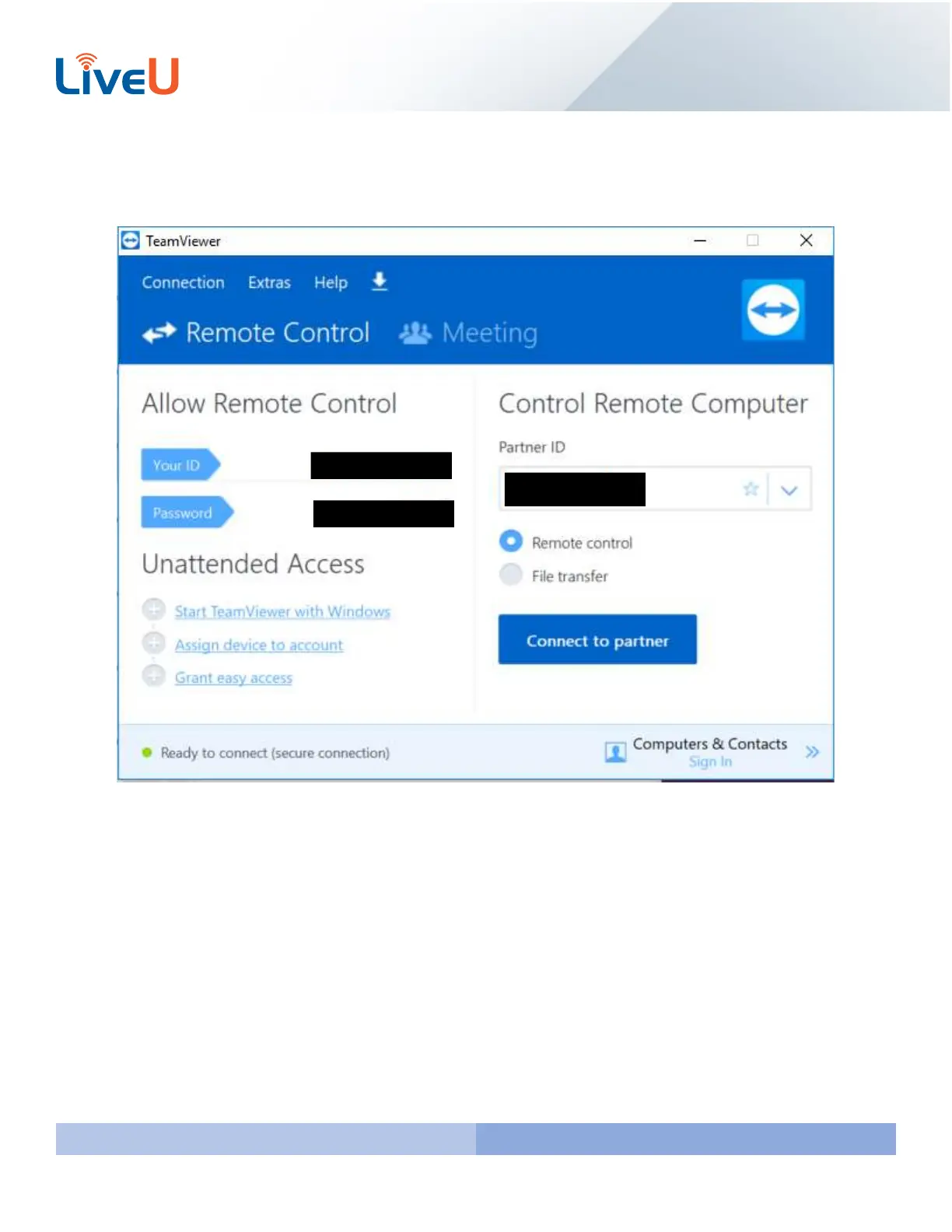 populate. This is what LiveU uses to connect remotely. You will also get a green indicator in the bottom left. If none of