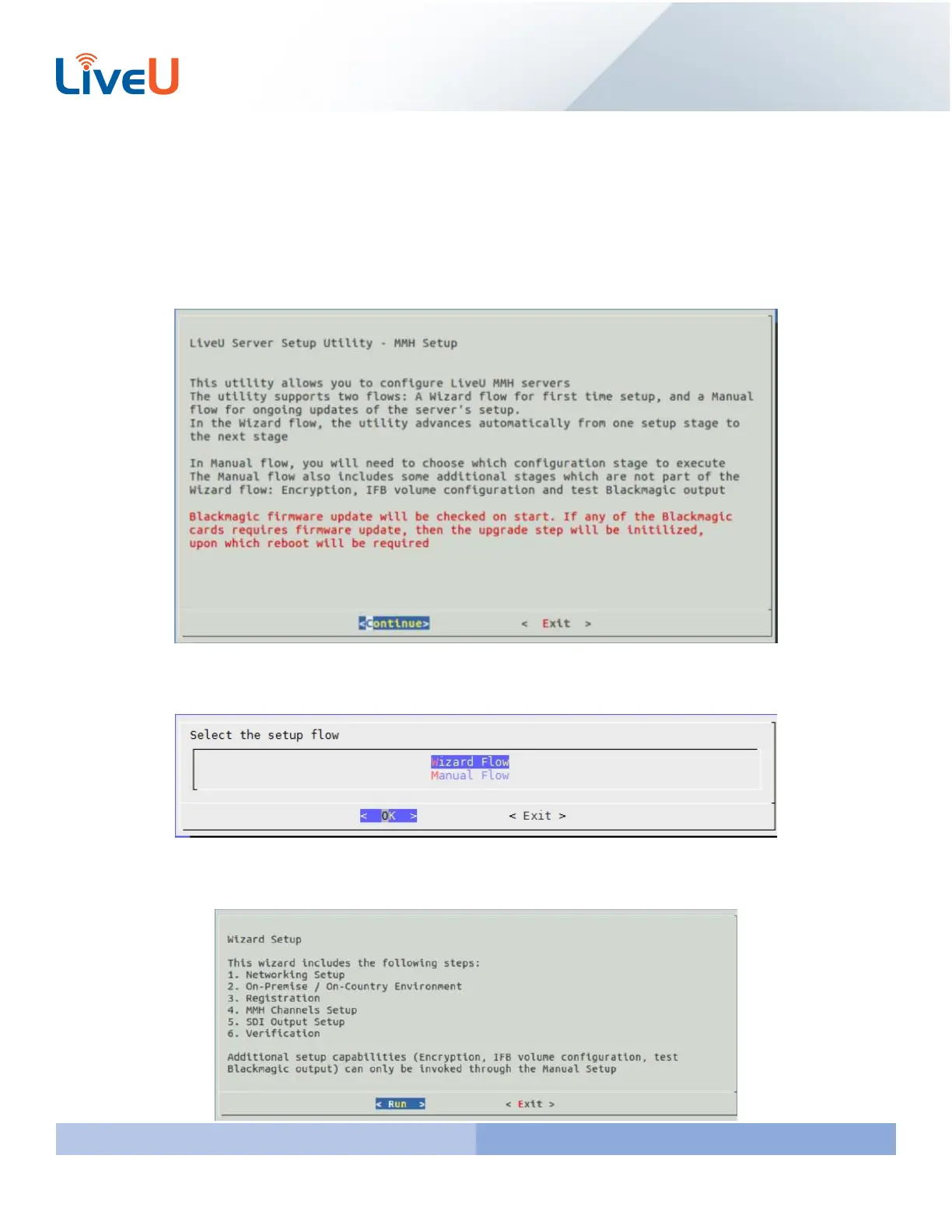 By launching the “liveu-config” you will be brought to the LiveU Server Setup Utility. Press “Enter” to continue with the