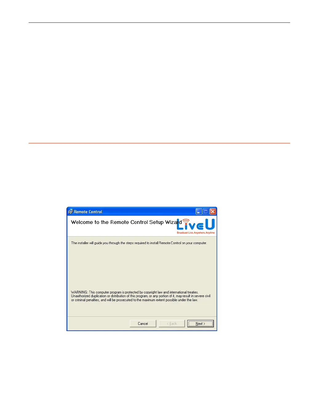 Installation of the Remote Control application is straightforward and should