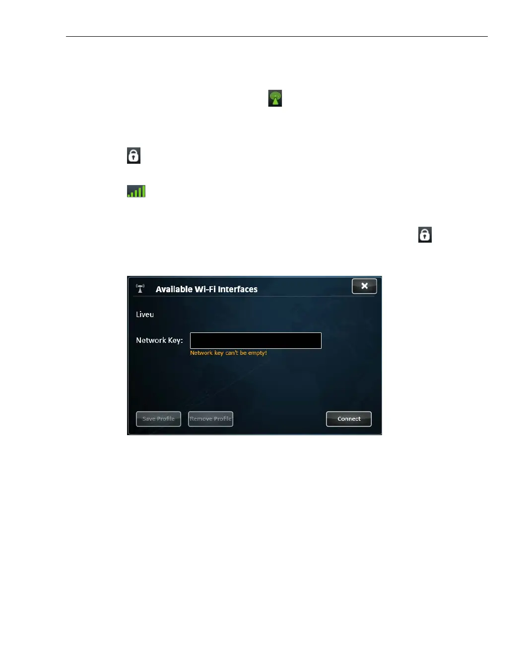 • Profile Window: Tap on any Wi-Fi network row that has an icon to