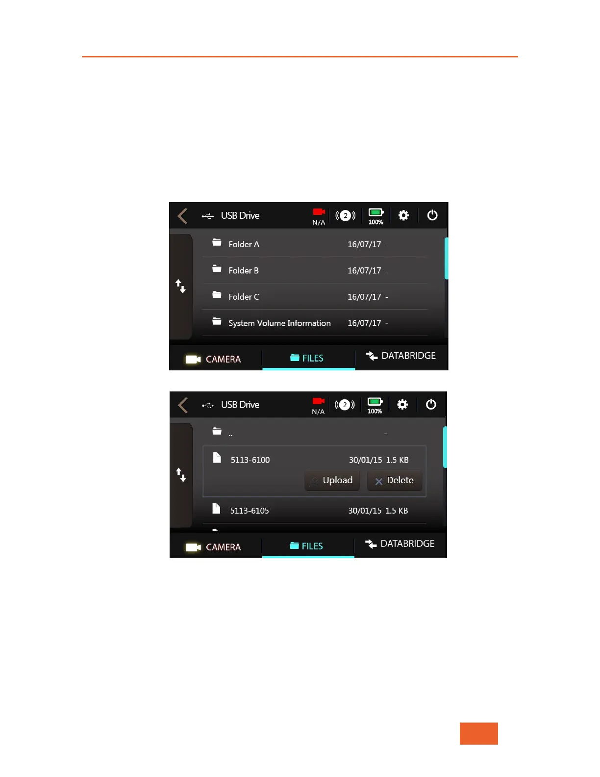 Tap this icon to display a list of files on the USB drive. This option is only active when a