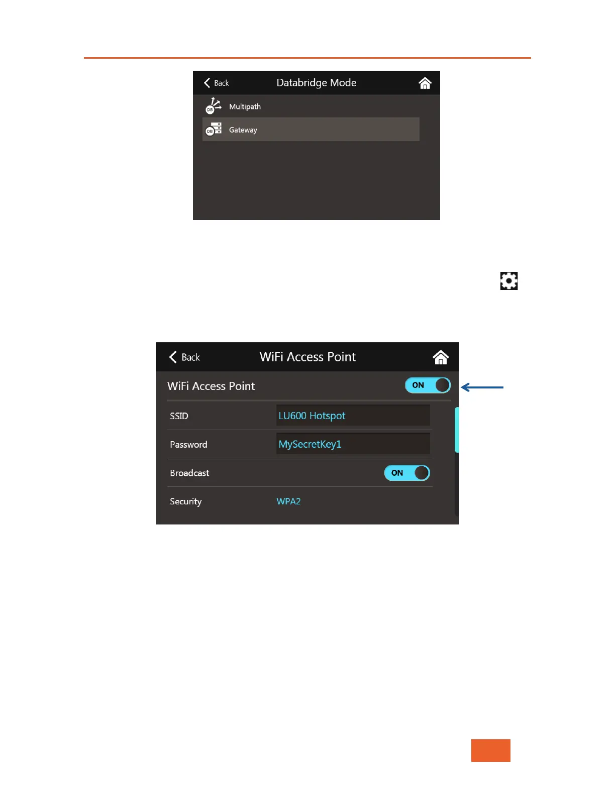 button in the Home screen, and select the DataBridge Settings Screen. Now tap on the WiFi