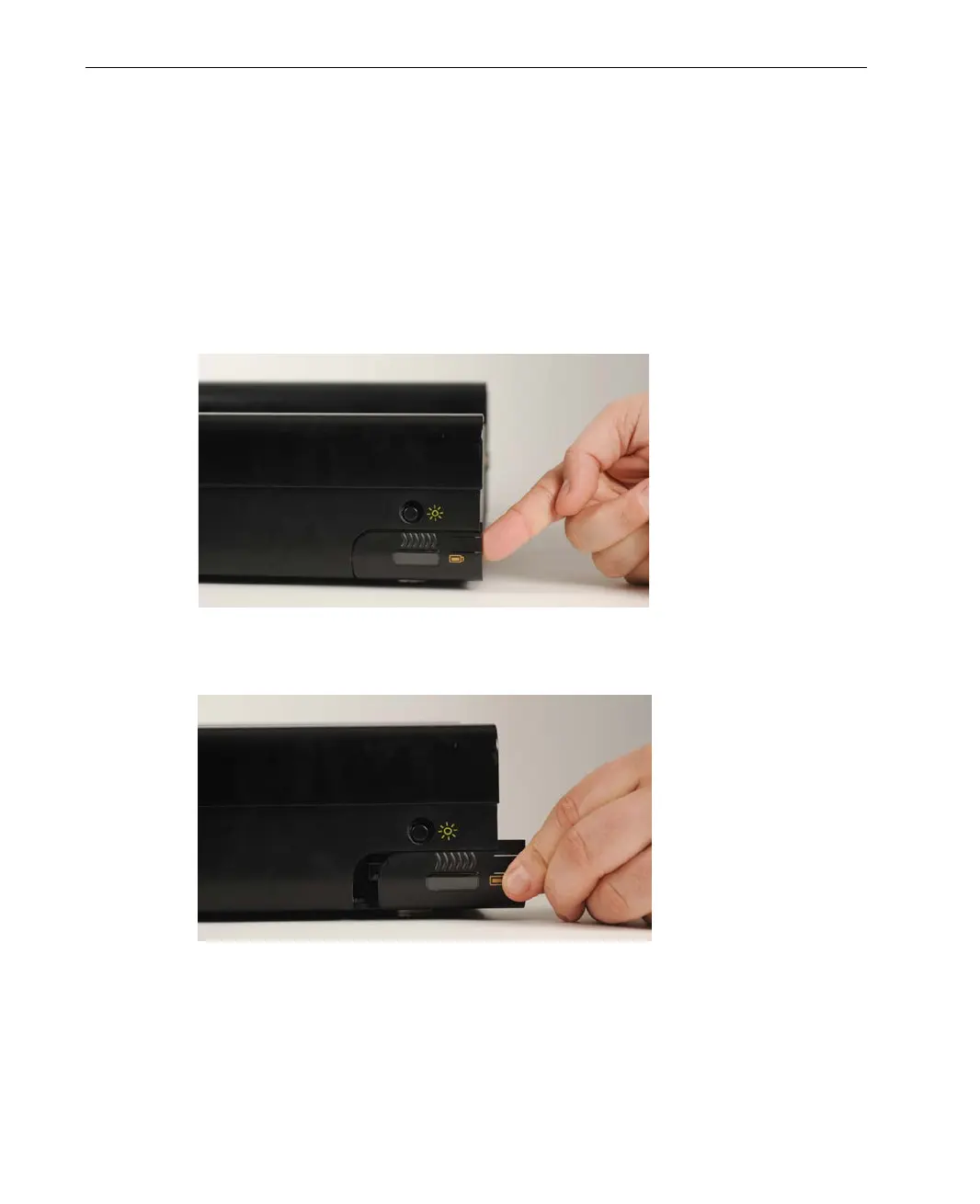 Figure 104: Opening the Battery Compartment – Lifting the Tab