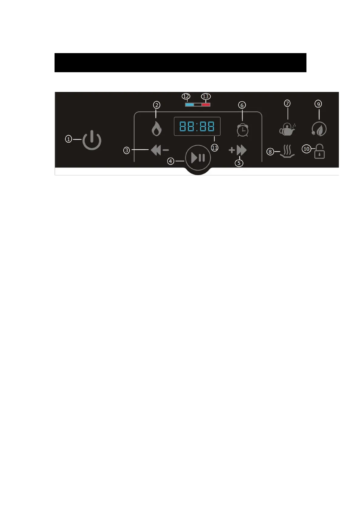 ⑤Temperature adjustment button (down) ⑫Low temperature light