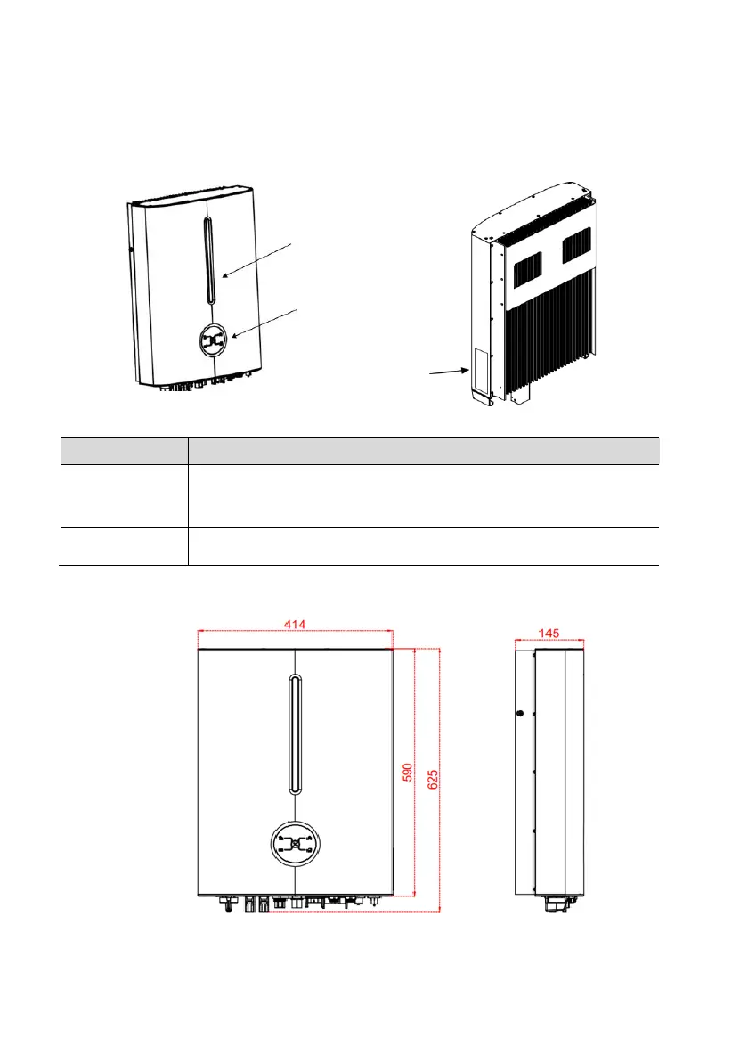 The following figure shows the dimensions of the inverter.