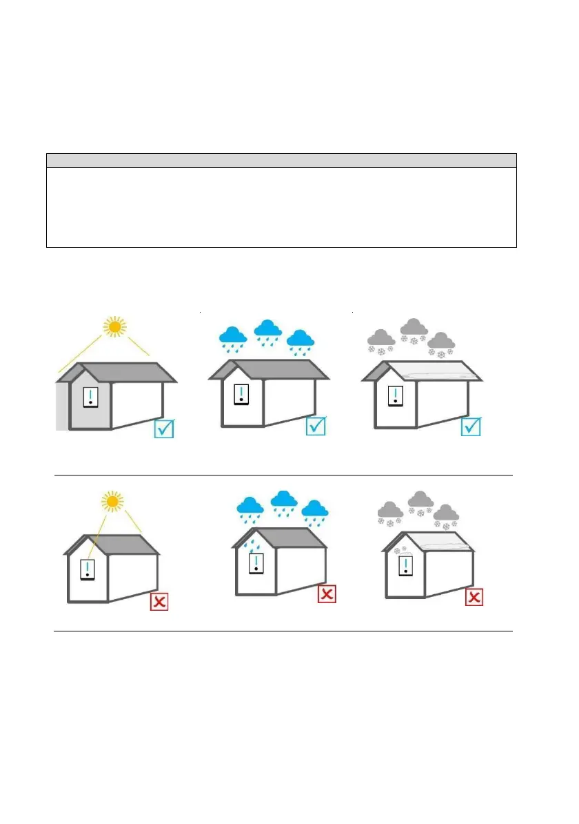AVOIDE direct sunlight, rain exposure, snow laying up during installation and operation.