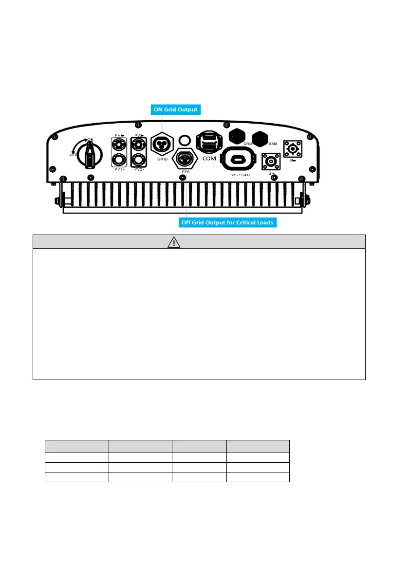 • DO NOT connect the AC grid terminal and AC Backup (EPS) terminal together.