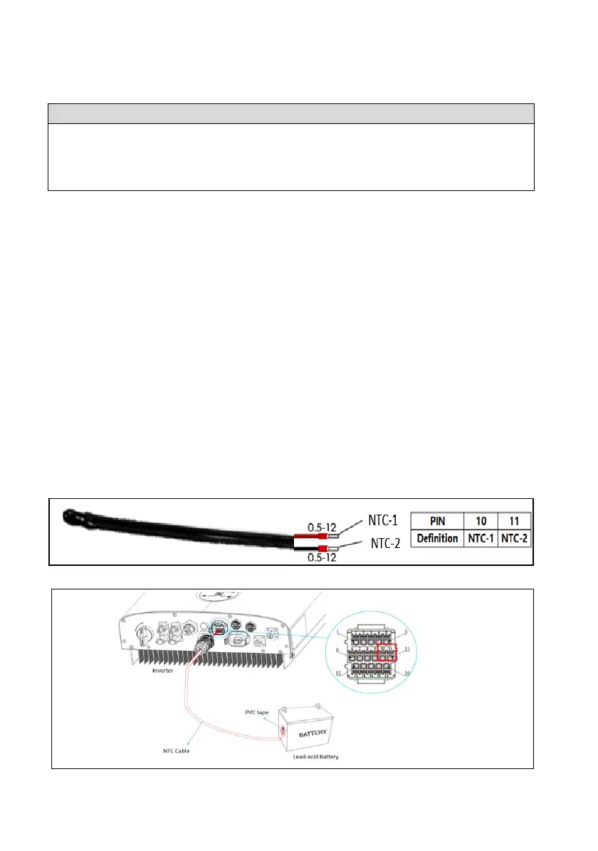 The inverter has integrated a NTC temperature sampling port for lead-acid batteries. With the