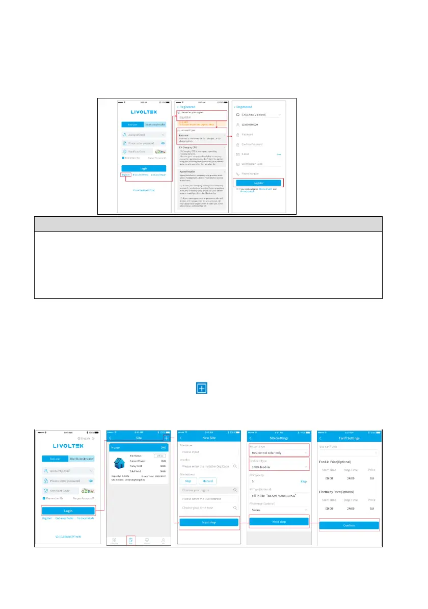 • The agent/installer can create a sub-account for the end user after the power site (PV