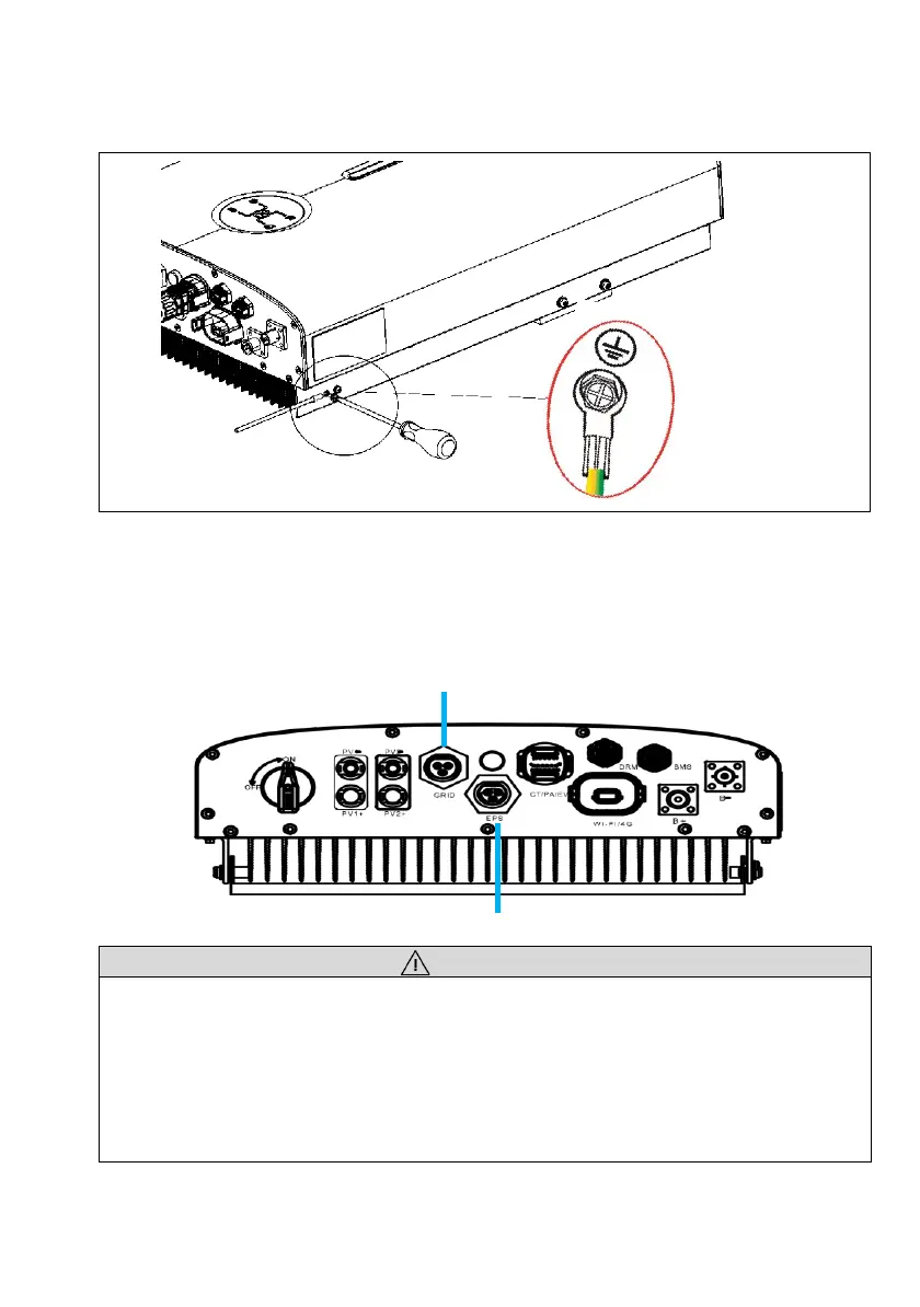 • Off Grid terminal (EPS output) CAN NOT connect to grid.