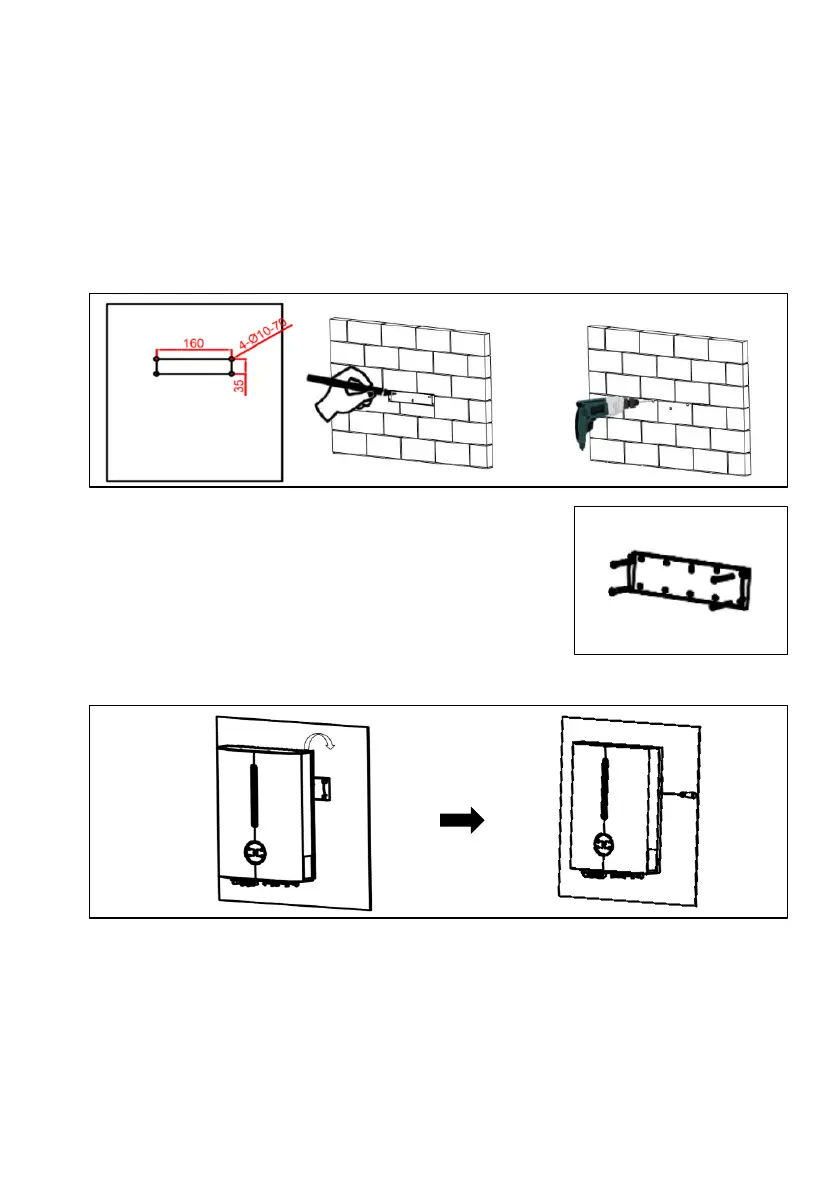 • Hang the inverter on the mounting bracket and lock the side with screw.