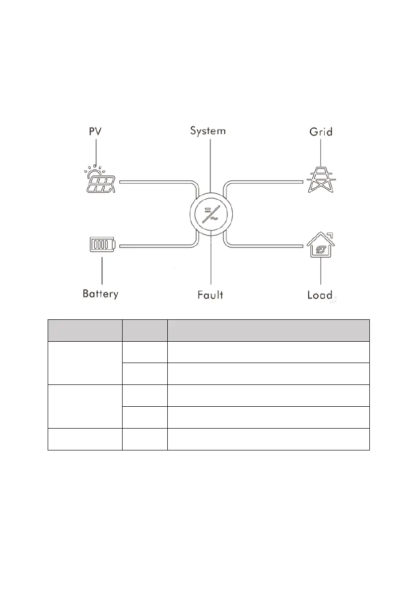The inverter operation status can be obtained from observing LED indicator status.
