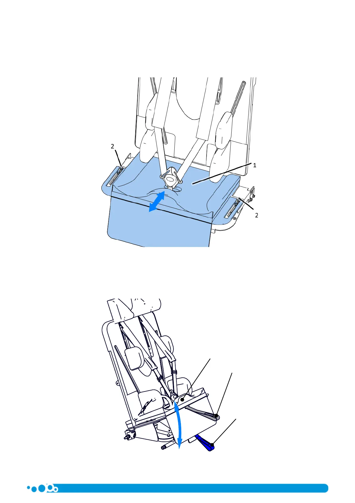 blue stripe (3) “Tilt Release” and by the grey stripe get the sit down. After releasing blue stripe the seat will lock in nearest position.