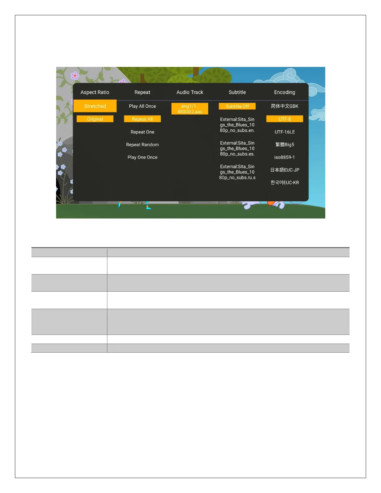 subtitle is highlighted in yellow. Select Off to turn subtitle off.