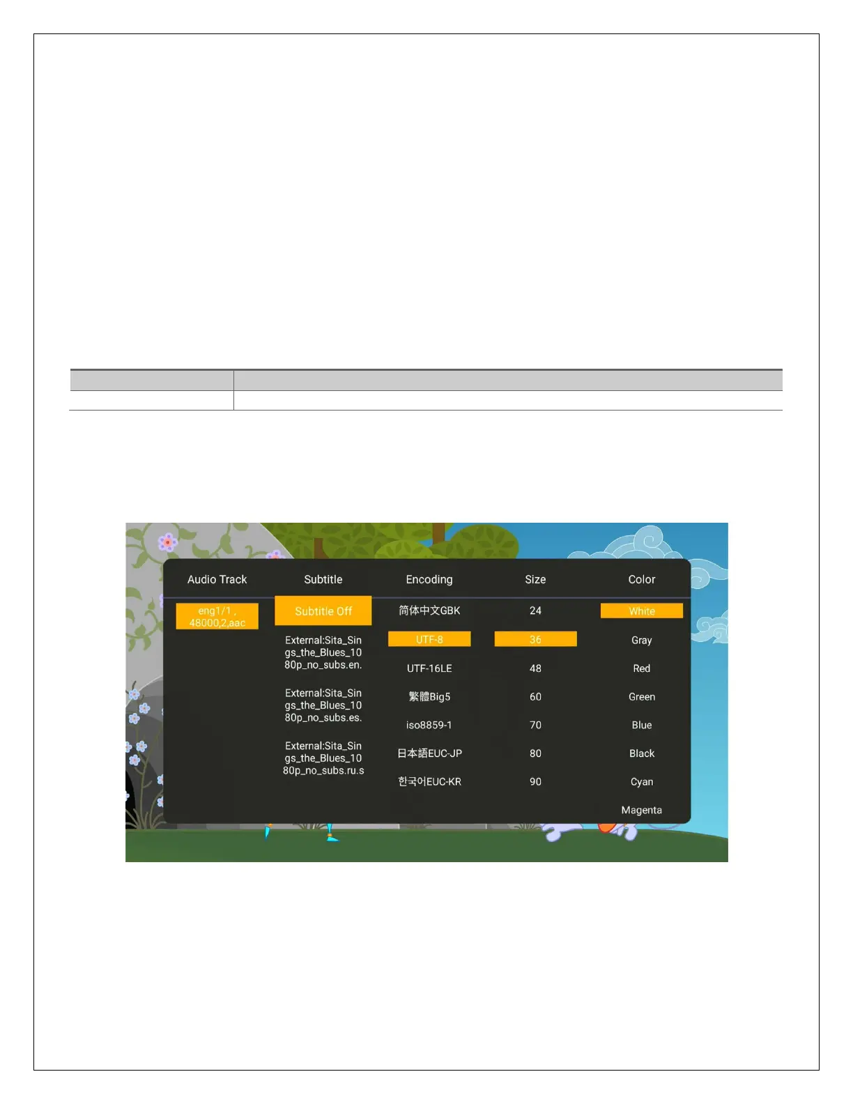 Subtitle text encoding, size, and color settings are not available when playing image-based