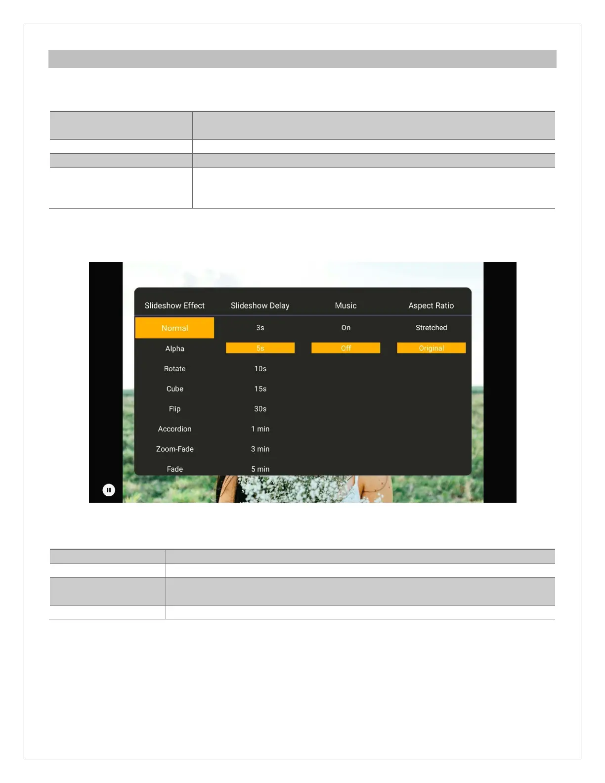 Sets the transition effect between photos in a slideshow