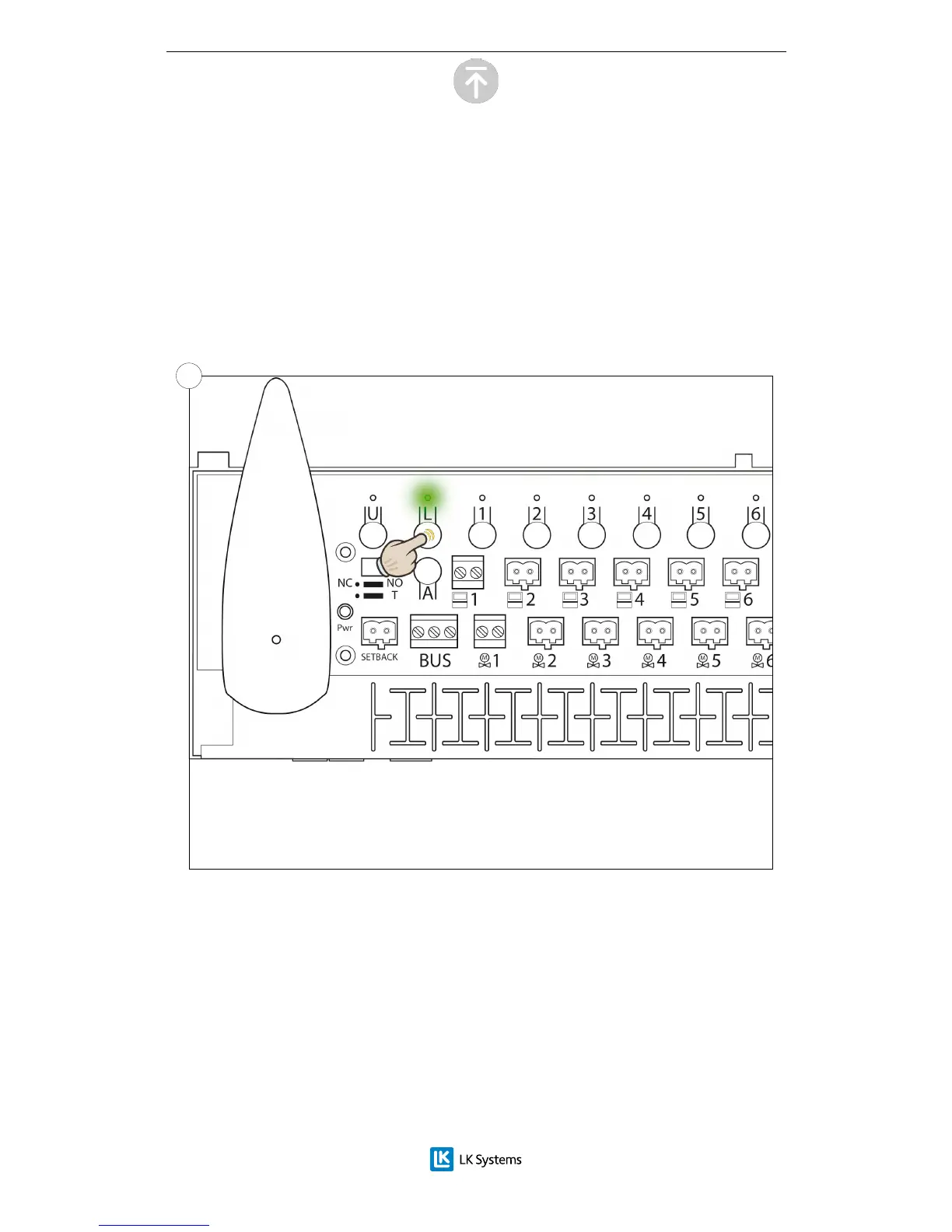 att hålla inne L-knappen tills lampan för L tänds till ett ett fast grönt sken.
