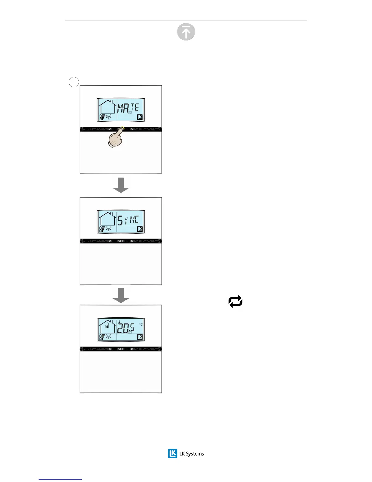 När synkroniseringen är färdig visar termostaten