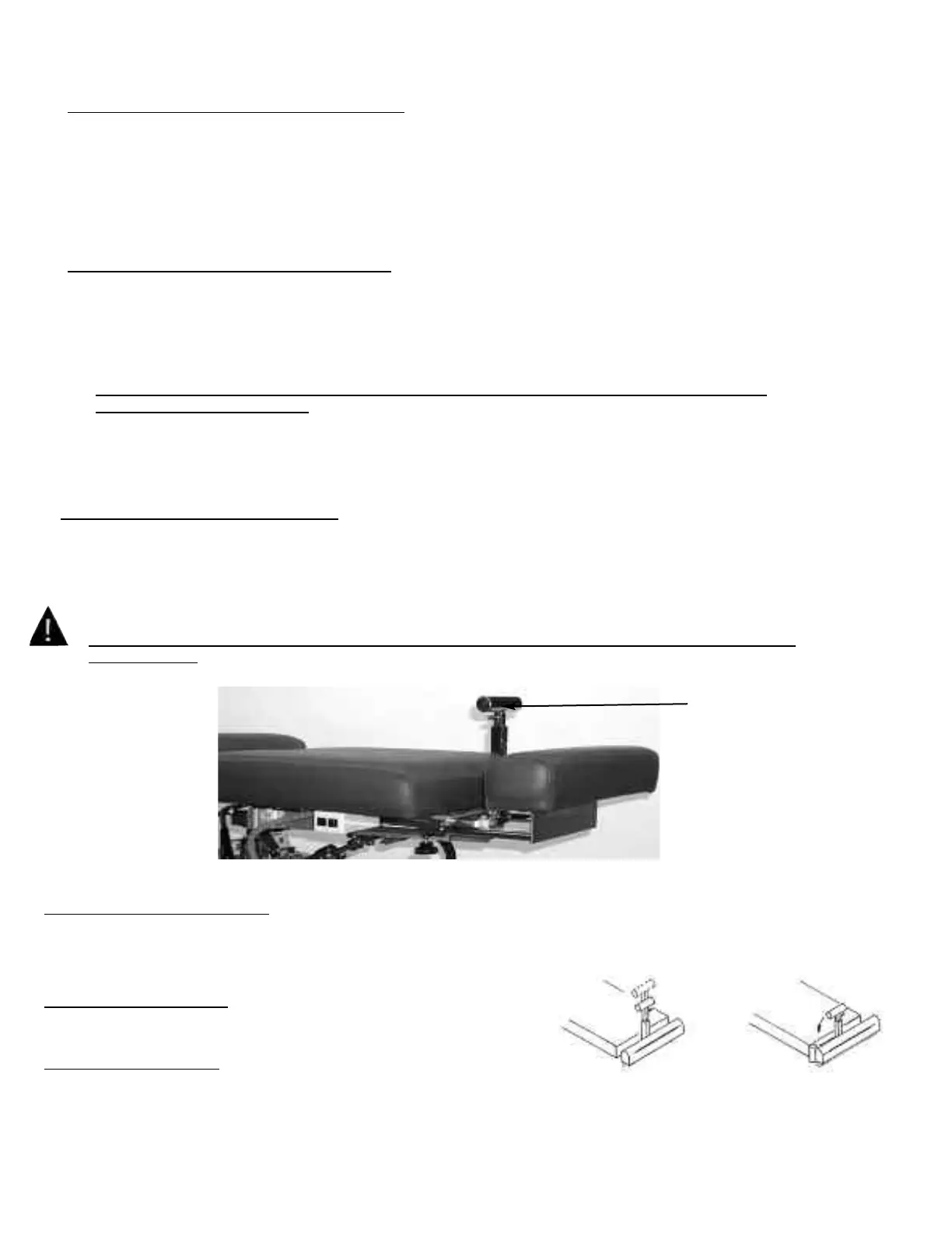 CAUTION: LOCK THE CUSHION FROM SIDE BENDING BEFORE ALLOWING A PATIENT ON OR