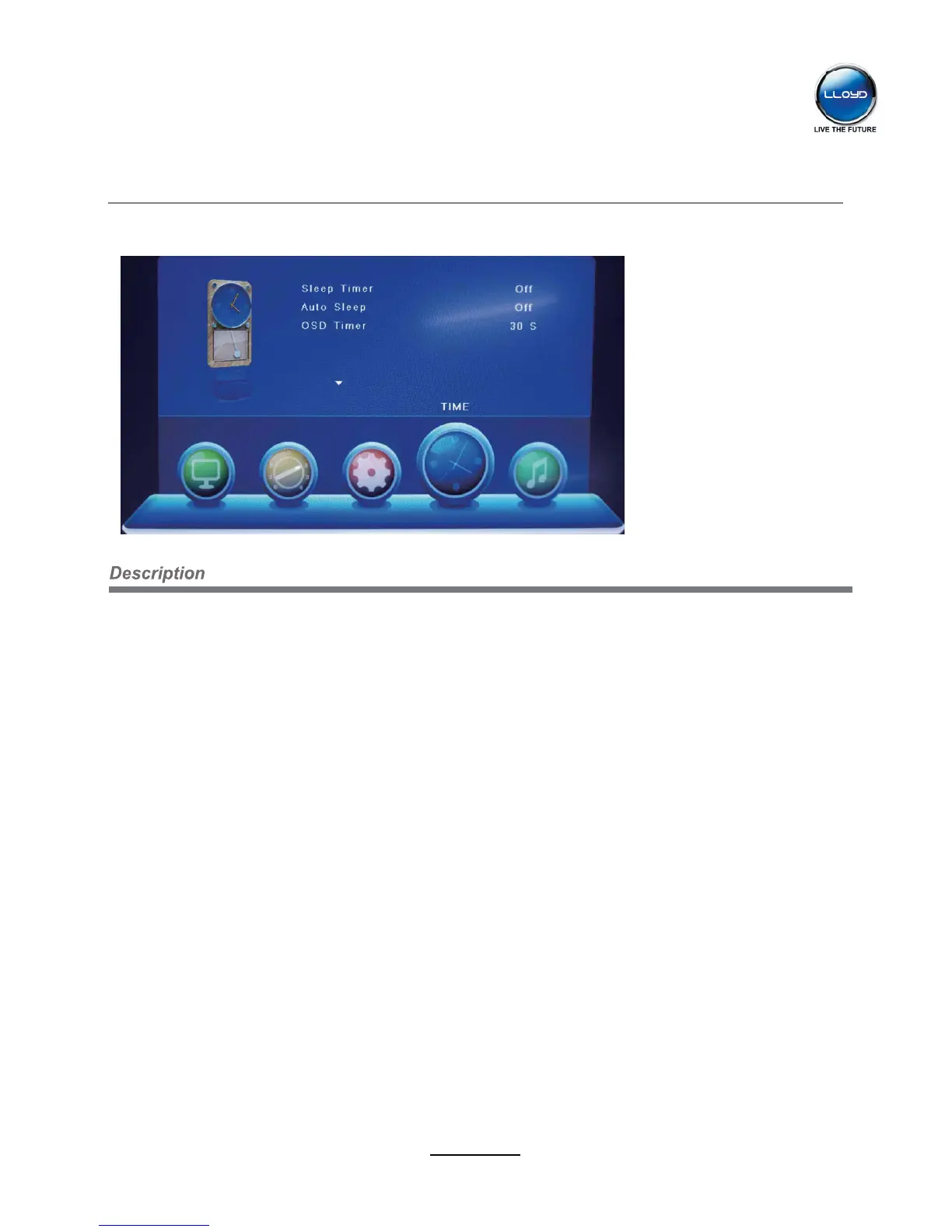 Sleep Timer: Allows you to setup the sleep timer among: 10min, 20min, 30min, 60min, 90min,