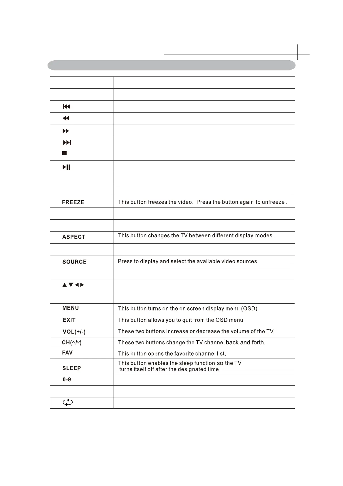 Remote Control function buttons