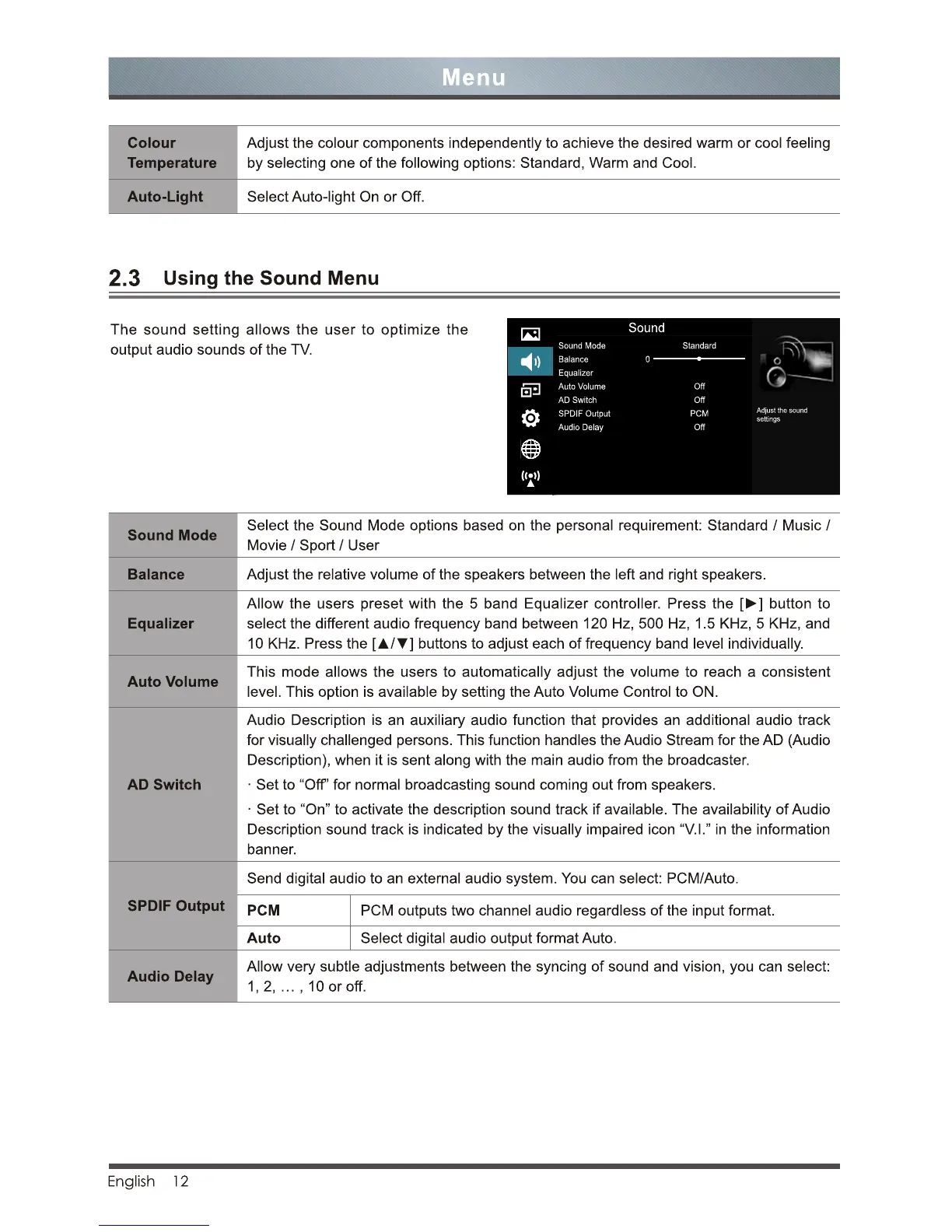 Lloyd l32s - Sound Menu Settings