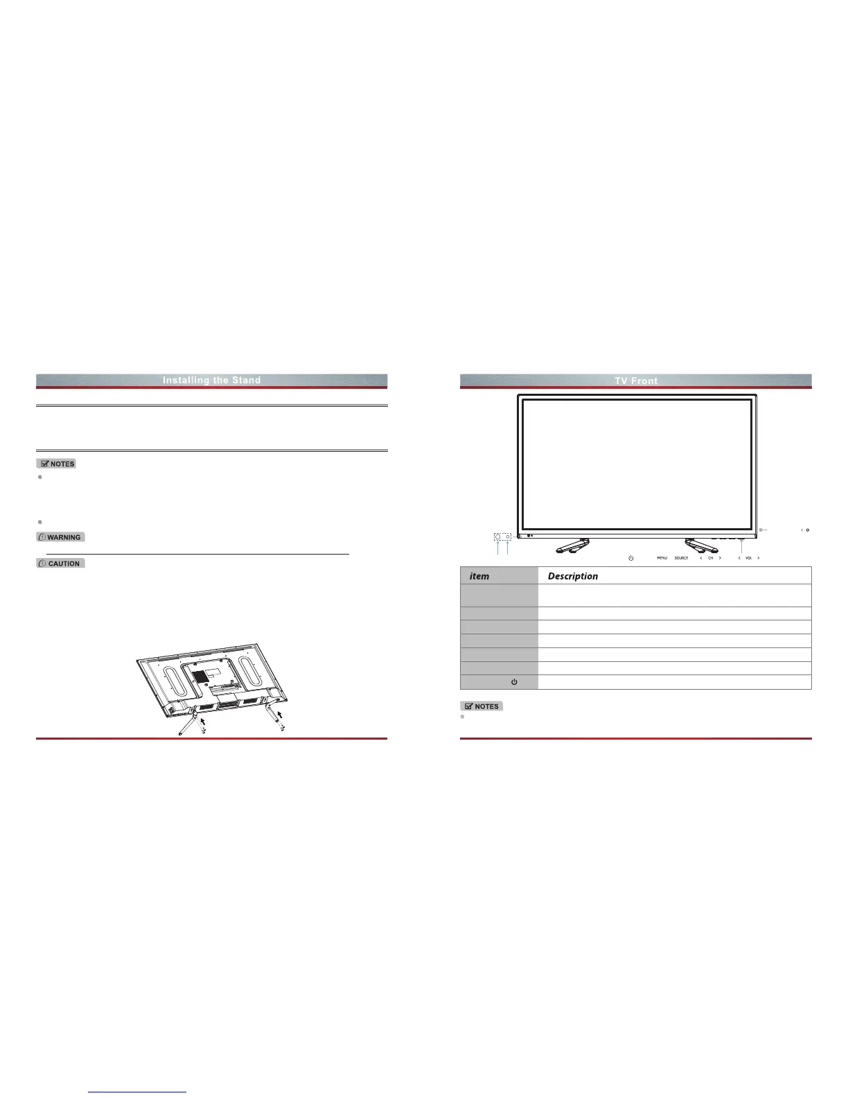 For tabletop use,the TV must be attached to the provided stand as shown on this page.