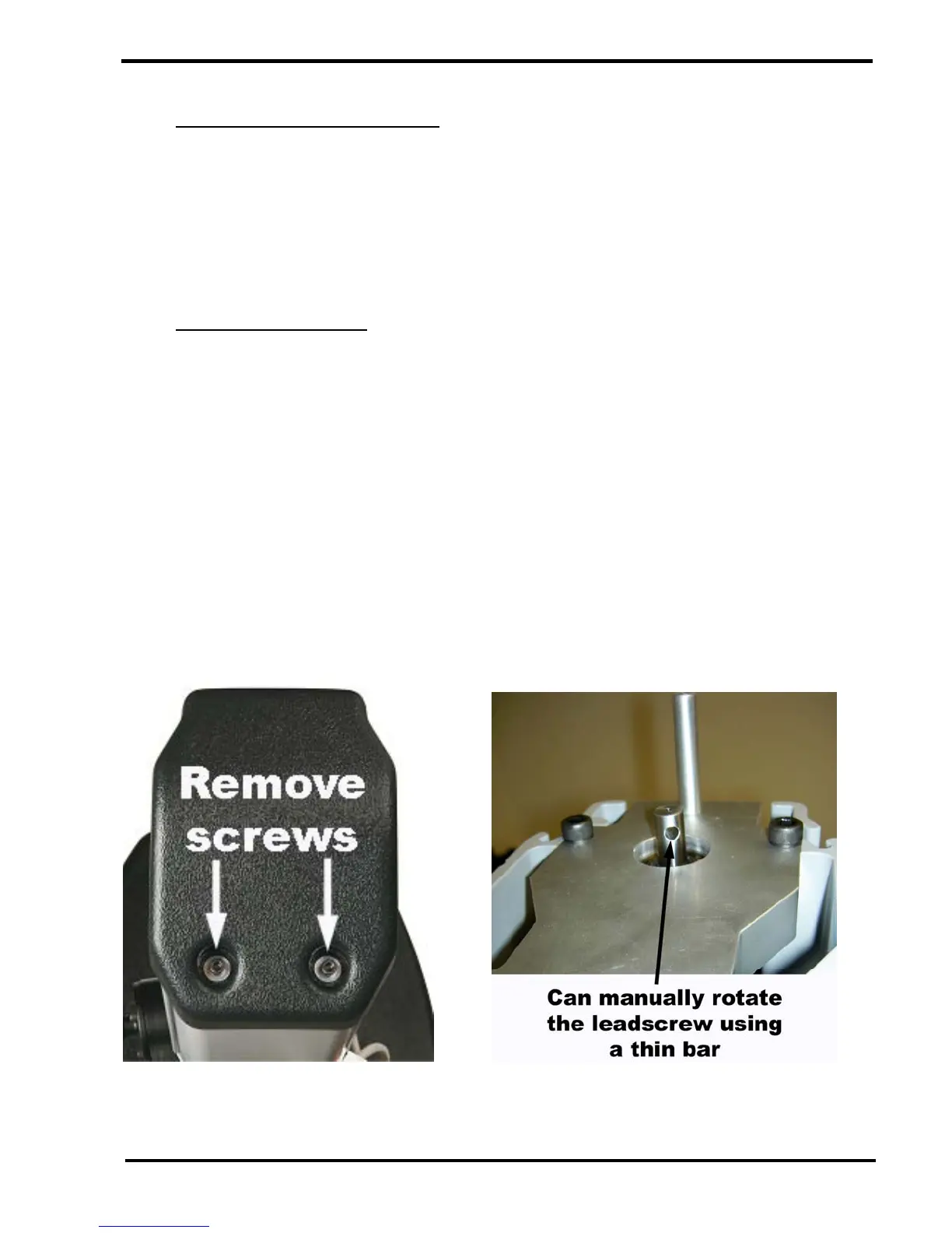 the crosshead to release the load. If this occurs, the leadscrew may be manually rotated to