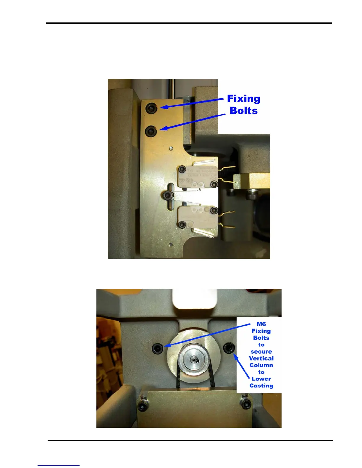 Remove the 2 off M6 socket head screws securing the vertical column to the lower casting.
