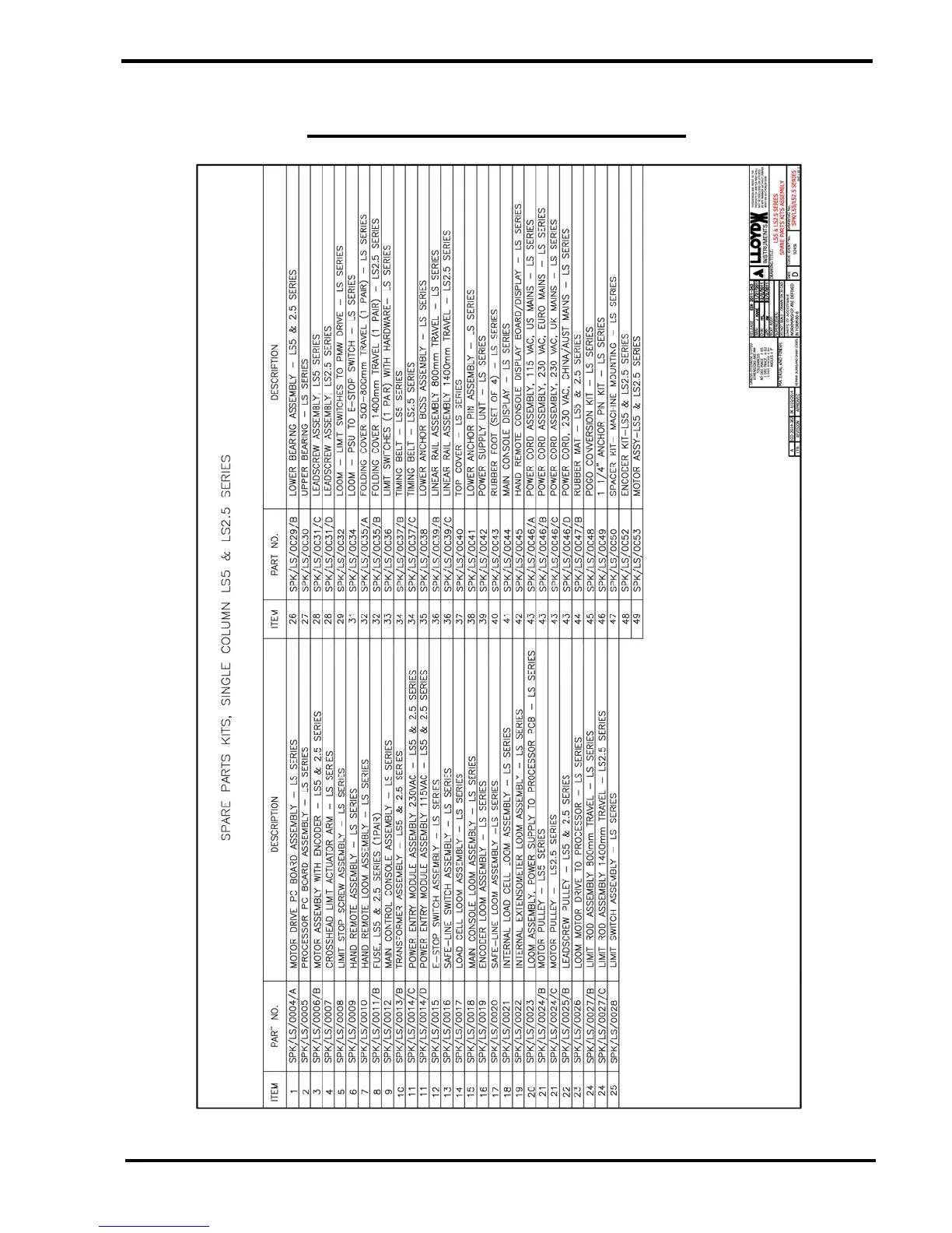 LS2.5 AND LS5 SPARE PARTS