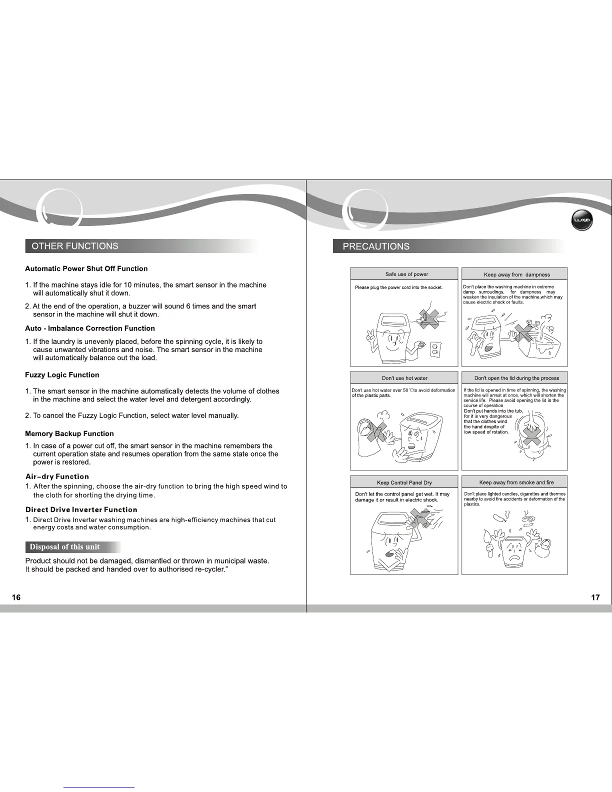 Lloyd LWDD80UV - Additional Functions and Precautions; Other Functions Overview; Safety Precautions
