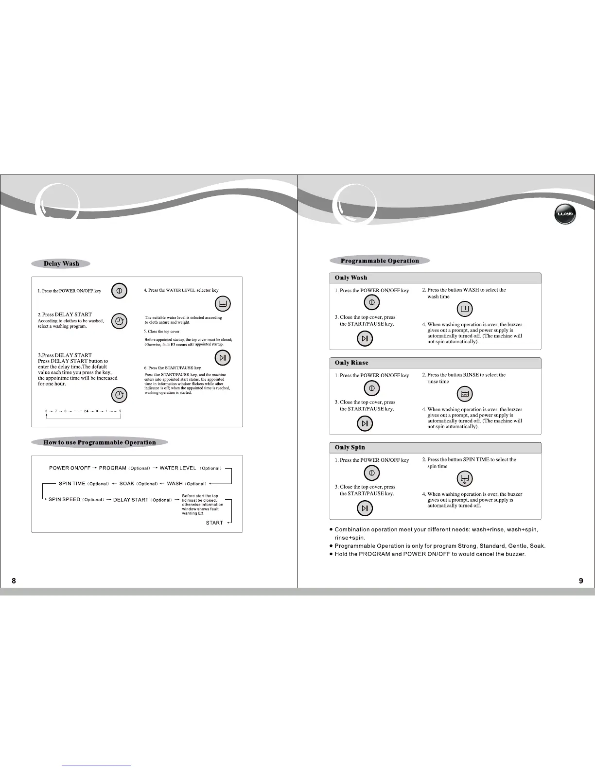 Lloyd LWDD80UV - Programmable Washing Options; Delay Wash Function; Specific Program Operations