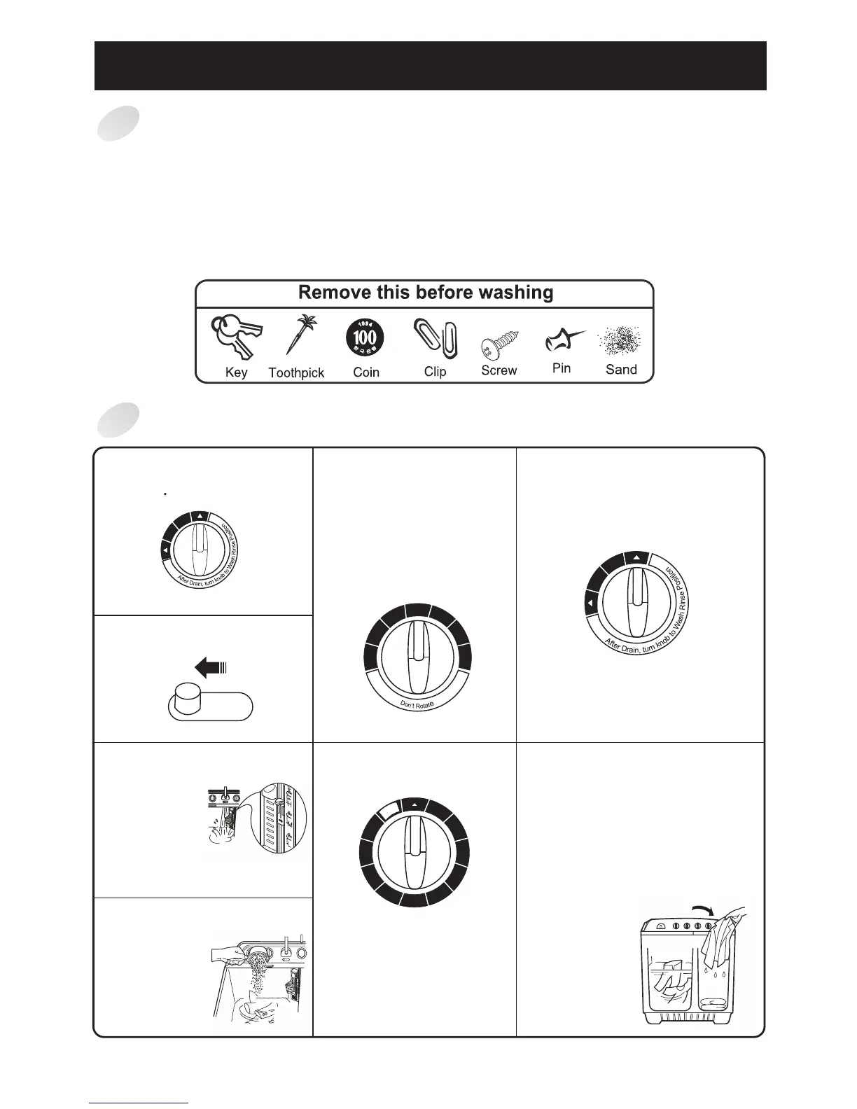 damage clothing or break the washing machine (could cause the drain hose to clog).