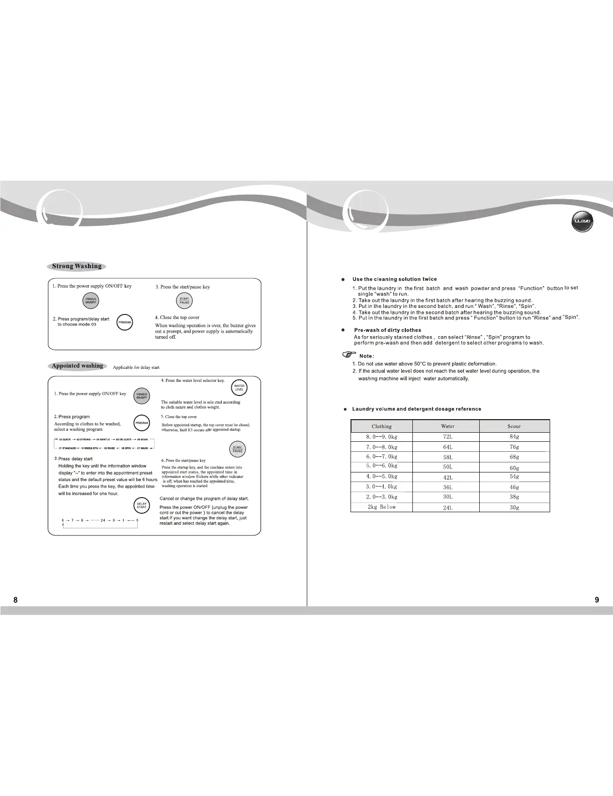 Lloyd LWMT65TG - Specific Washing Programs; Strong Washing Steps; Appointed Washing Steps