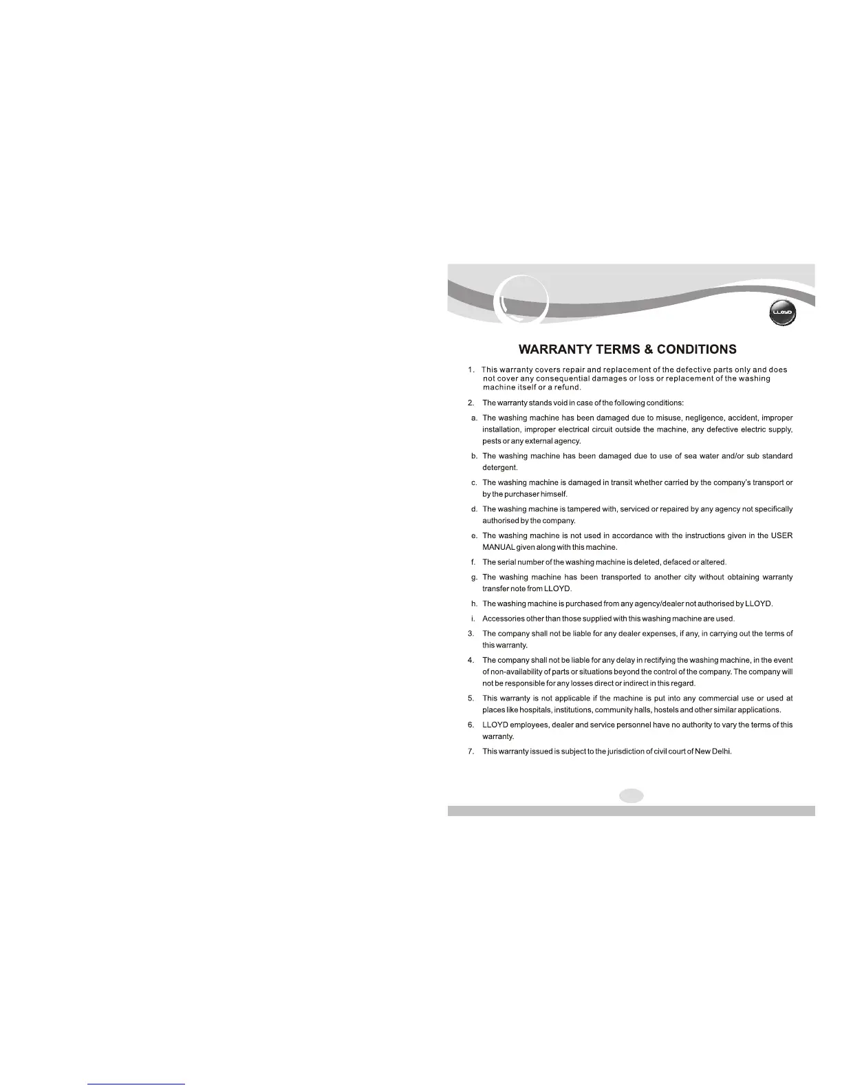 Lloyd LWMT80TS - Warranty Terms and Conditions; Warranty Coverage and Limitations; Conditions Voiding Warranty