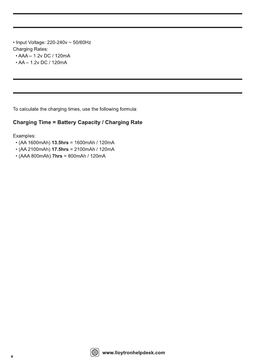LLOYTRON B1501 - SPECIFICATIONS; GUIDE TO CHARGING TIMES