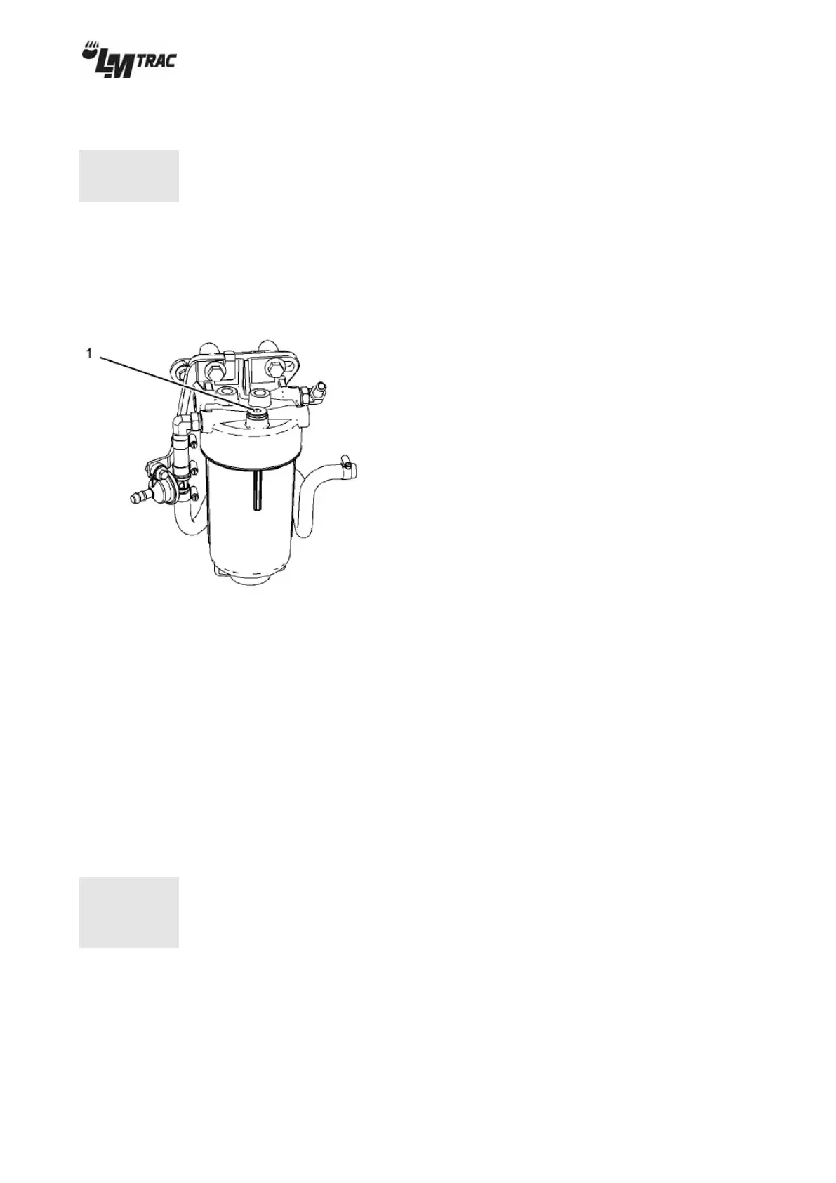 ► Loosen the vent screw (1) on the secondary fuel filter. Turn the ignition switch to the “RUN” position. The ignition