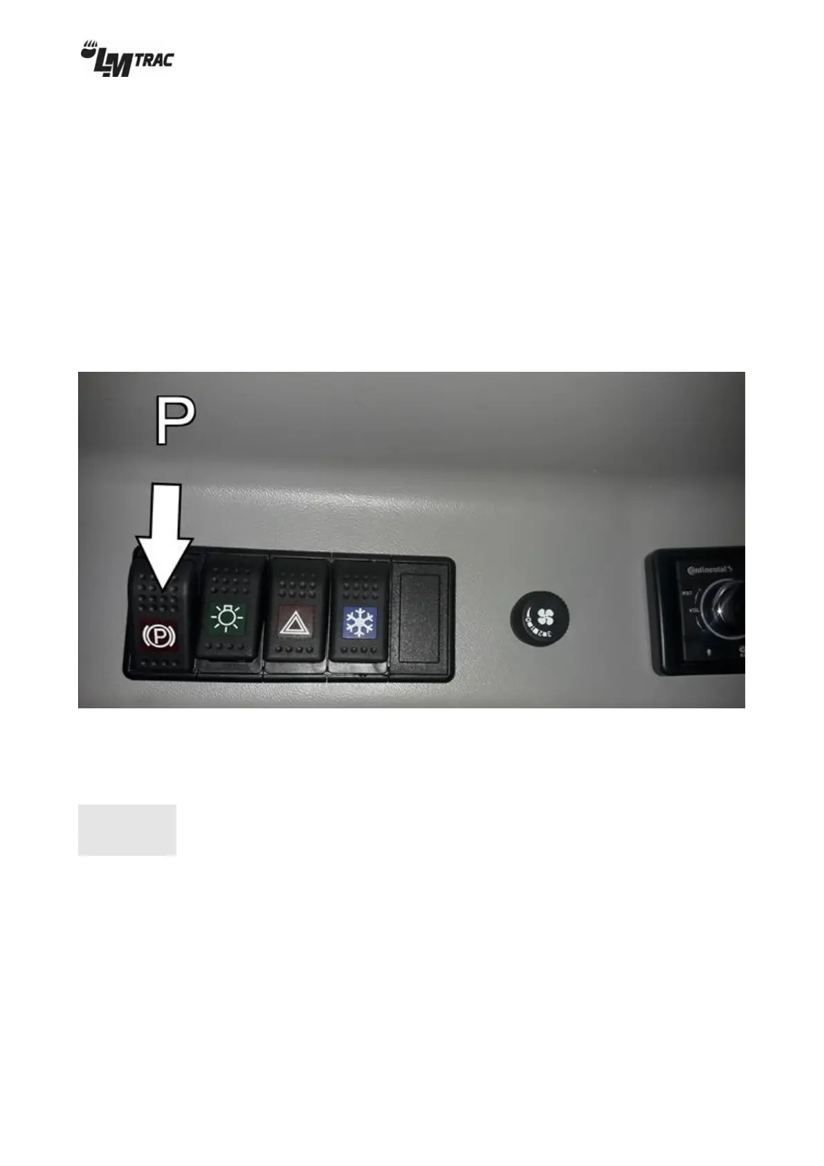 The machine must stay safely in position on a slope of 20% when the parking brake is engaged (switch P is ON). If there