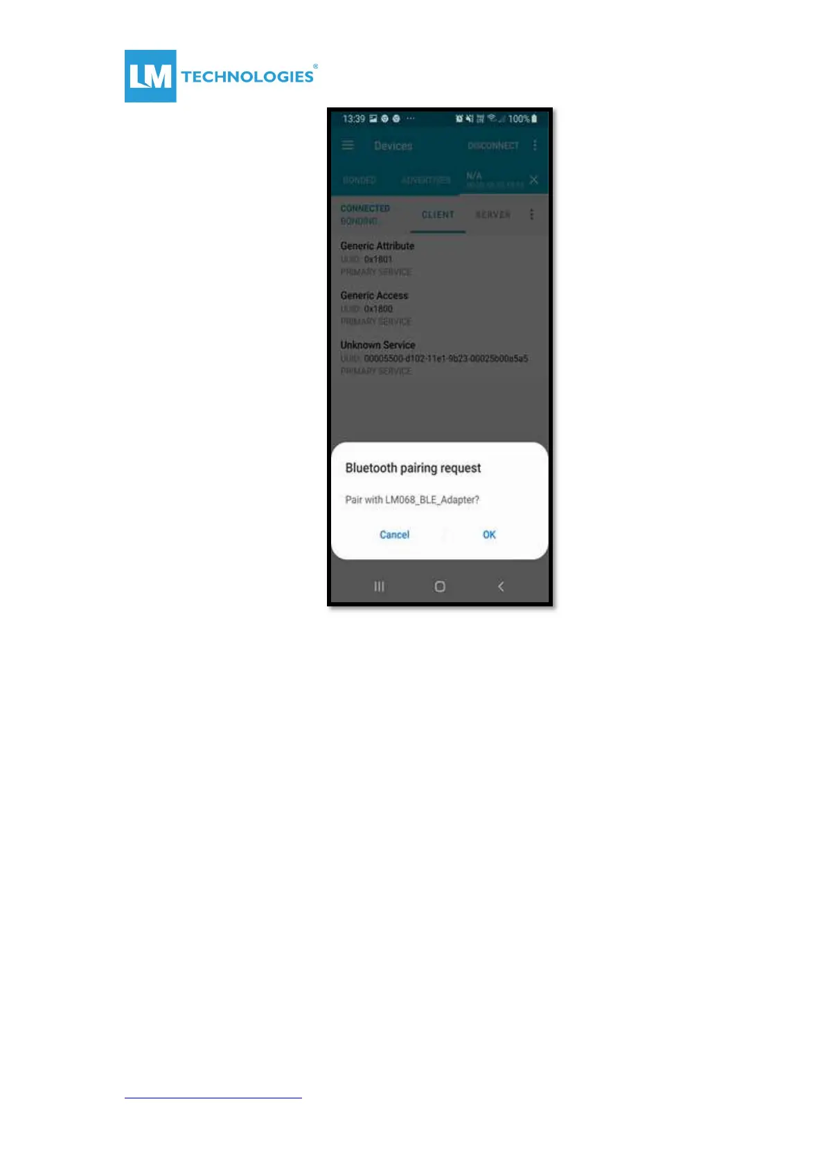i. Once the BLE adapter receives the BLE connection request, it accepts