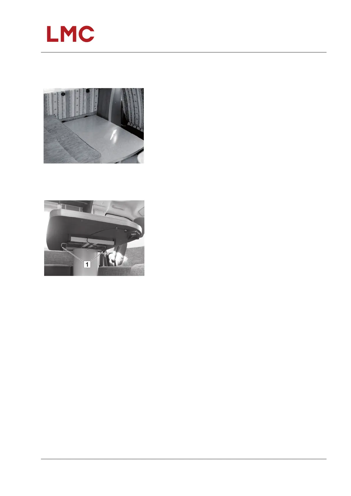 1. Releasing the clamp lever (1) underneath the tabletop.