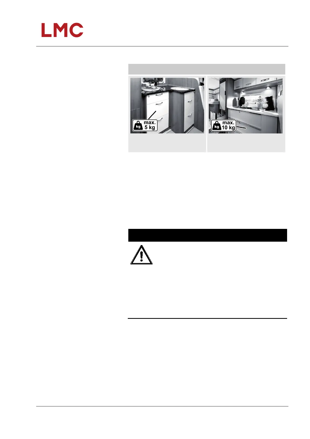 Large drawers may be loaded up to a maximum of 10 kg, smaller