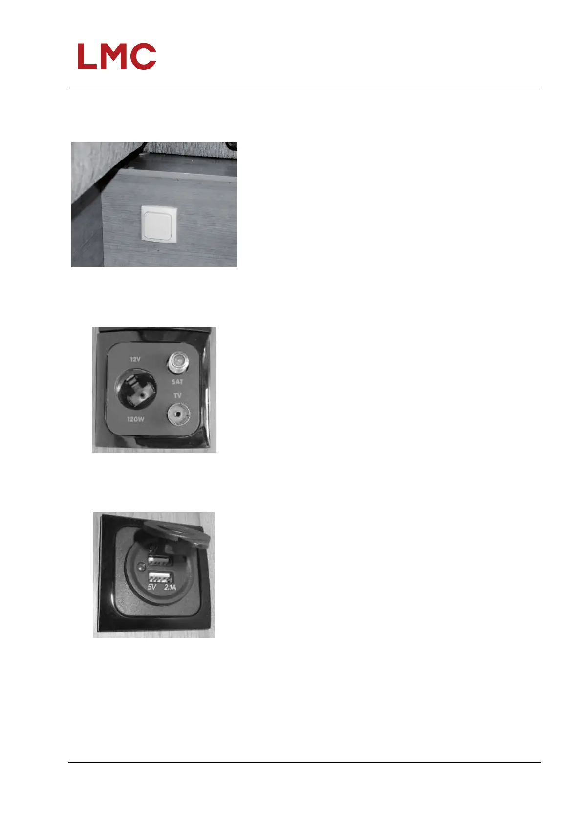 If a TV wall mounting is fitted, a 12 V socket will also be installed