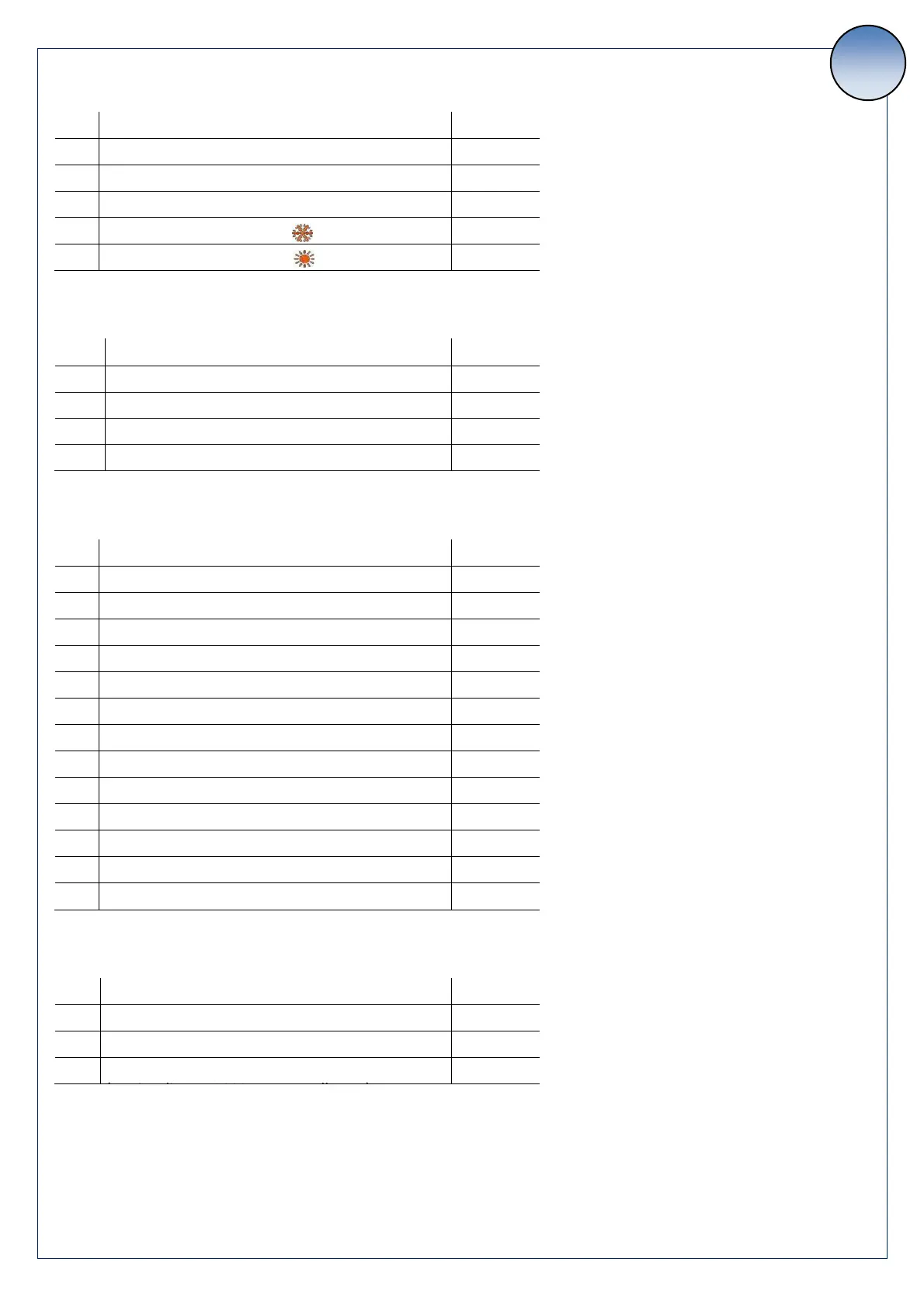 Defrost parameter (password= 1)