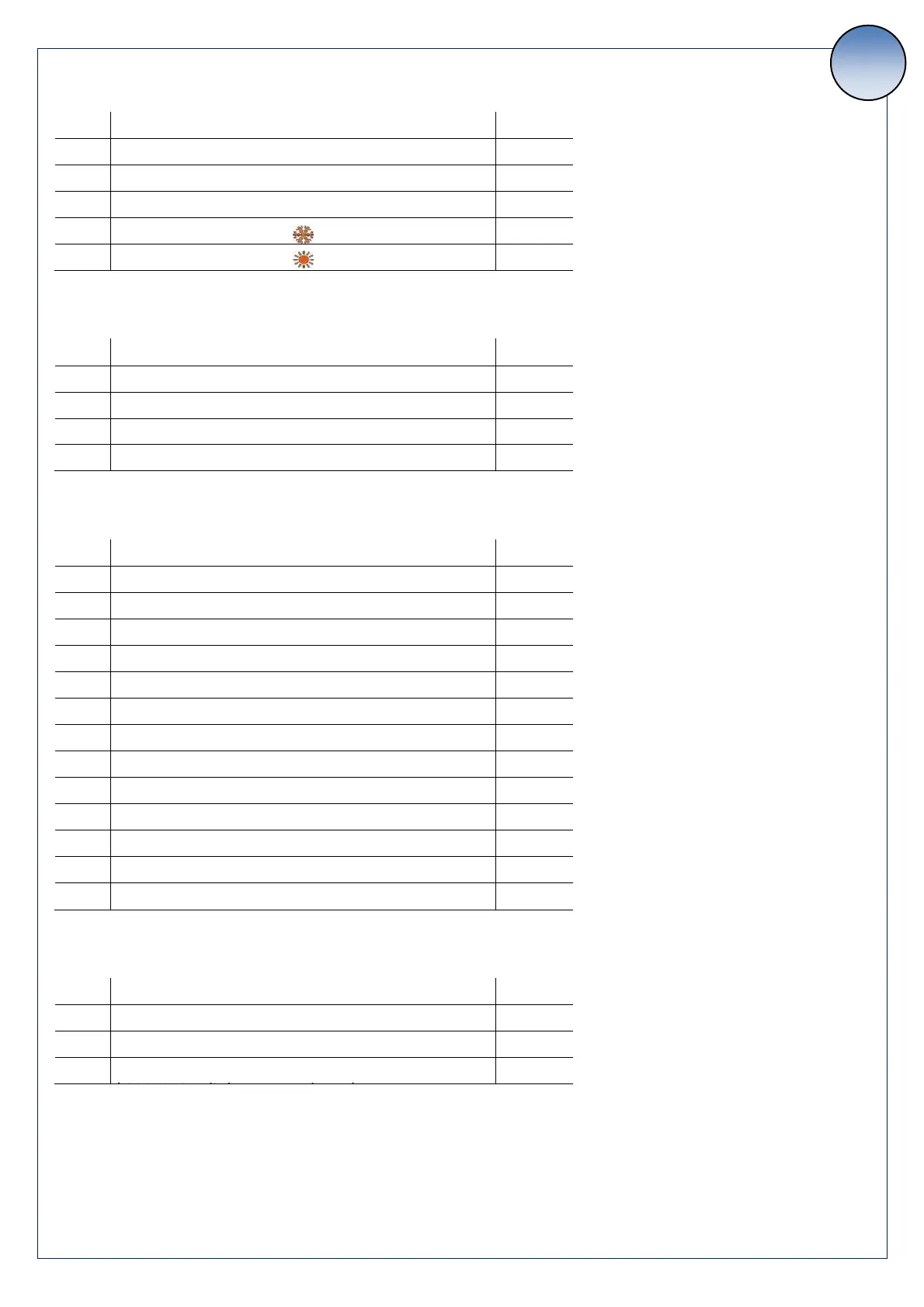 Paramètres dégivrage (mot de passe = 1)